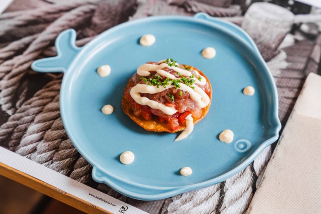 Una opción destacada para los amantes de las tapas es el tartar de atún con tomate, una tapa maravillosamente equilibrada que destaca la frescura del pescado y el brillo de los productos locales. Igualmente refrescante es su ensalada de pepino y yogur, una combinación sencilla pero elegante que aporta un contraste fresco y vibrante al menú. Ambos platos muestran el talento de Amor Pescado para convertir ingredientes sencillos en bocados memorables y sabrosos.